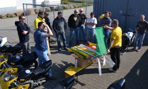 vom ADAC bereitgestellten Lederkombis und die Sitzprobe auf den
